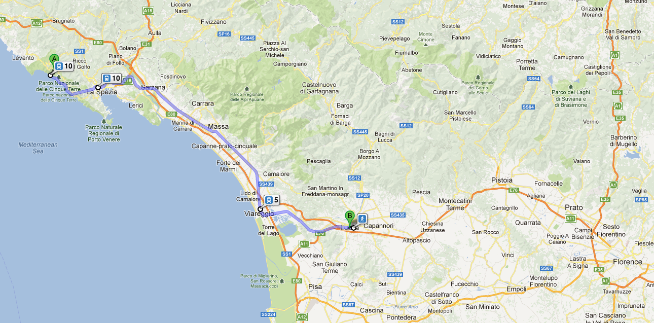 从五渔村(Cinque terre)离开的那天,我们是起个大早,赶个晚集。之前计划时,我想去卢卡(Lucca),就把住处定在了卢卡,我看上一处旧宅改装的公寓,还火急火燎的付了钱,弄成了no refund no change的板上钉钉。她却想去比萨,对于我的嗤之以鼻,她嗤回来说,“你不要以为我只晓得看斜塔,那里有座大教堂,很棒的。”于是我们决定,早晨先从五渔村到卢卡,放下行李,再去比萨。反正按我从意铁的时间表上看到的,卢卡到比萨只要二十几分钟。后来我才领教,意国不是瑞士,意铁的时间表,那是仅供参考的。