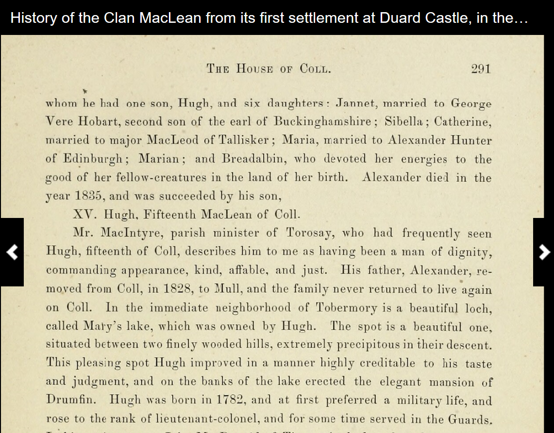 Sibella Maclean (1785-1830)出生于苏格兰高地贵族麦克林家族(Clan MacLean)。麦克林家族在苏格兰西部的阿盖尔地区和内赫布里底群岛拥有大量领地。她父亲是科尔岛第十四世领主(14th Laird of Coll)。科尔是内赫布里底群岛中的一个小岛,在大西洋上,遗世美丽。不过,她的家族并不住科尔岛,而是常住内赫布里底群岛中的第二大岛,马尔岛(Mull)上。Sibella有一个哥哥五个姐姐,她是最小的一个。