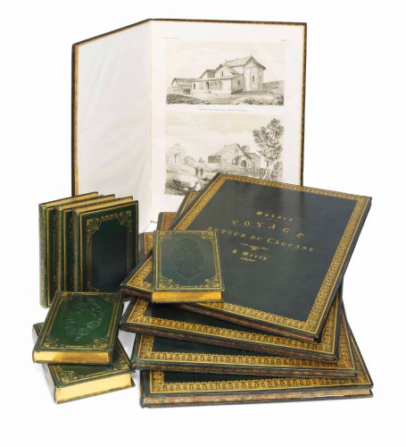 然后去Auguste Semen书屋。买了Dubois Montpéreux的《高加索之旅》第六卷,八开本,巴黎Gide书屋1839年版,全莫斯科独一本,开价26卢布,还价25卢布拿下。还买了《俄罗斯帝国地理历史词典》,1824年莫斯科第2版,15卢布。Semen先生非常文明有礼,所以我问他有没有和我们一起旅行的合适人选推荐?没有!但他想起费舍尔先生(也就是我们的费教授,今天在林荫道走第一圈时我们还遇到他,非常客气)跟他谈起过这事。费教授非常盼望我们能有旅伴,还跟他说,他(费舍尔)很愿意帮我们写申请信等等。但是Semen建议我们申请一个邮政快递员跟车。带我们自己的仆人,别花心思再聘仆人了,目前这两个足够了。无论我们到哪,各地总督(我们应该给沿途所有总督写信)都会为我们提供跟车员,人手是足够的。